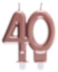Ruusukullanvärinen ja elegantti kakkukynttilä, joka on numeron 40 muotoinen. Kakkukynttilä on 7,5 x 9 cm kokoinen.