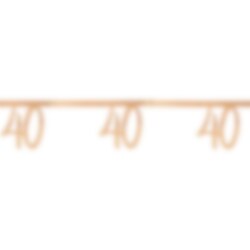 Koristeellinen pahvinen viirinauha kiiltävällä ruusukultafoliolla ja numerolla 40. Viirinauha on erinomainen koriste 40-vuotisjuhliin. Jokainen numero on 18 x 23 cm kokoinen ja itse viirinauha on 250 cm pitkä.
