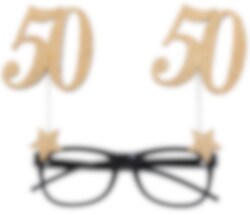 Hauskat silmälasit, joita voit käyttää 50-vuotispäivänäsi tehdäksesi juhlasta hieman hauskemman. Lasit ovat 15 x 16 cm kokoiset ja ne on valmistettu muovista.