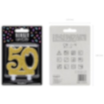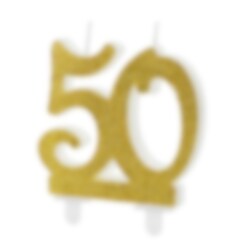 Hieno kakkukynttilä, jossa on kullanväristä kimalletta syntymäpäiväkakkuun. Kakkukynttilässä on numero 50 ja se sopii erinomaisesti 50-vuotisjuhliin. Kakkukynttilä on 7,5 cm kokoinen.