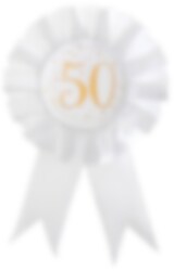 Kaunis valkokultainen ruuusuke, jossa on numero 50. Ruusuketta voidaan käyttää sekä koristeena esimerkiksi kukka-asetelmissa että synttärisankarin asusteena 50-vuotispäivänä. Ruusuke on halkaisijaltaan 8 cm ja 15 cm korkea.