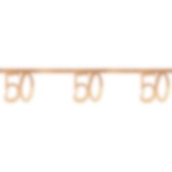 Koristeellinen pahvinen viirinauha kiiltävällä ruusukultafoliolla ja numerolla 50. Viirinauha on erinomainen koriste 50-vuotisjuhliin. Jokainen numero on 18 x 23 cm kokoinen ja itse viirinauha on 250 cm pitkä.