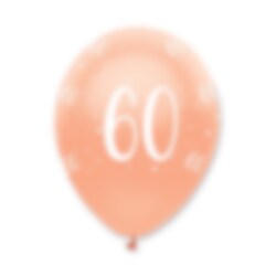 6 ruusukullanväristä ilmapalloa, joissa numero "60" ja valkoisia tähtiä. Hauska koriste 60-vuotisjuhliin. Ilmapallot ovat halkaisijaltaan noin 30 cm ja ne voidaan täyttää ilmalla tai heliumilla.
