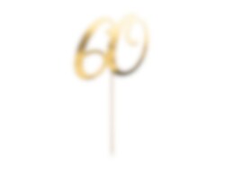 Upea 60-vuotisteemainen kakkukoriste kultaisella foliolla. Täydellinen kakun koristeluun 60-vuotisjuhliin. Kakkukoristeen koko on noin 19cm.