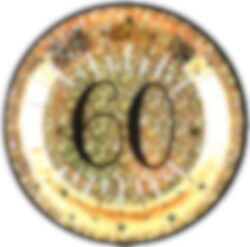 10 kpl kimaltavia kullanvärisiä lautasia jossa on numero 60. Kauniit lautaset sopivat täydellisesti 60-vuotisjuhlien koristeluun. Lautaset ovat pahvia ja niiden halkaisija 22,5 cm. Yhdistä muiden saman sarjan juhlatarvikkeiden kanssa ja saat täydelliset 60-vuotisjuhlat.