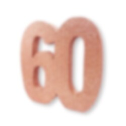 Erittäin kaunis ja vaikuttava ruusukultainen pöytäkoriste. Koriste on numeron 60 muotoinen. Keskipiste juhlapöytään 60-vuotisjuhliin. Koriste on 19,5 x 20 cm kokoinen.