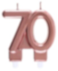 Ruusukullanvärinen ja elegantti kakkukynttilä, joka on numeron 70 muotoinen. Kakkukynttilä on 7,5 x 9 cm kokoinen.