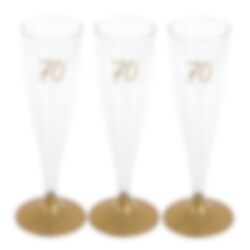 6 kpl kauniita ja käytännöllisiä kertakäyttöisiä samppanjalaseja. Muovilasit ovat tyylikkäät ja sopivat täydellisesti 70-vuotisjuhliin.