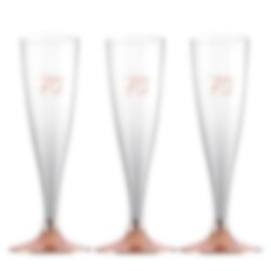 6 kpl hienoja ja käytännöllisiä kertakäyttöisiä samppanjalaseja. Muovilasit ovat täydelliset 70-vuotisjuhliin, sillä niissä on tietenkin koristeena numero 70.