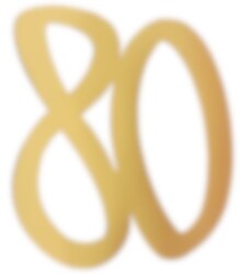 4 kpl. numeron 80 muotoisia kultafoliokoristeita pahvista. Nämä koristeet ovat monikäyttöisiä ja niitä voidaan yhdistää muihin 80-vuotisteeman koristeisiin. Koristeet ovat 18 x 20 cm kokoisia.