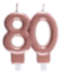 Ruusukullanvärinen ja elegantti kakkukynttilä, joka on numeron 80 muotoinen. Kakkukynttilä on 7,5 x 9 cm kokoinen.