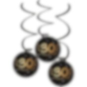 Riippuvat Swirl-koristeet Musta & Kulta 30 vuotta