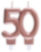 Ruusukullanvärinen kakkukynttilä 50 vuotta