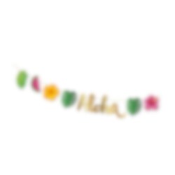 Luo värikäs ja trooppinen juhlatunnelma tällä upealla Aloha-viirinauhalla. Sen koristeelliset lehdet, kukat, vesimeloni ja kullanvärinen Aloha-teksti tekevät siitä leikkisän ja kesäisen elementin, joka sopii täydellisesti havaijijuhliin, allaskutsuihin, kesäjuhliin tai muihin trooppisen teeman juhliin.