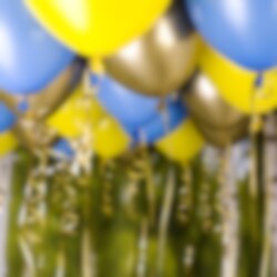 Ilmapallosetti kattoon - Keltainen, Sininen & Kulta