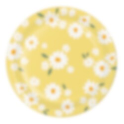 8 kpl. keltaisia pahvilautasia kauniilla kukkakuvioilla. Lautasten halkaisija on 23 cm.