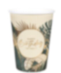 10 kpl pahvimukeja kauniilla lehtikuvioilla ja kultaisella "Happy Birthday to you!" -tekstillä. Mukit ovat noin 10 cm korkeita ja niiden tilavuus on 270 ml.