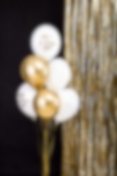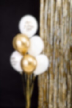 Kaunis ilmapallokimppu kullan ja valkoisen väreissä. Täydellinen valinta huoneen koristeluun katseen vangitsemiseksi. Pakkaus sisältää 2 valkoista ja 2 kultaista ilmapalloa, sekä 2 valkoista ilmapalloa tekstillä "Happy Birthday to You" ja kultaisilla tähdillä. Kaikkien ilmapallojen halkaisija on noin 30cm täytettynä. Ilmapallot voi täyttää heliumilla tai ilmalla. Suosittelemme täyttämiseen ilmapallopumpun käyttöä.