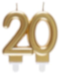 Kullanvärinen ja elegantti kakkukynttilä, joka on numeron 18 muotoinen. Kakkukynttilä on 7,5 x 9 cm kokoinen.