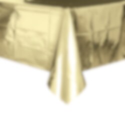 Superhieno, kultainen foliopintainen muovpöytäliina. Hieno koriste ja pöydän suoja. Pöytäliinan mitat ovat n.137 x 274 cm stor.
