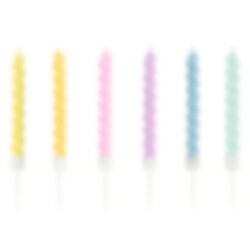 Piristä juhlia näillä ihanilla pastellinvärisillä kakkukynttilöillä. Nämä ruuvien muotoiset kynttilät tuovat kakkuun ainutlaatuisen ja hauskan silauksen. Jokaisessa pakkauksessa on 6 kynttilää pirteissä pastelliväreissä. Kynttilöissä on helppokäyttöiset pidikkeet.