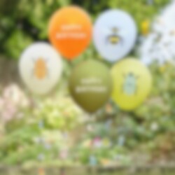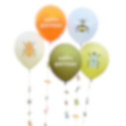 Anna Bug Party -juhlillesi värikäs silaus näillä ilmapalloilla ja niiden hauskoilla naruilla! Täydellinen leikkisän ja luonnollisen tunnelman luomiseen. Jokainen pakkaus sisältää viisi ilmapalloa eri painatuksilla.