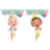 Kaunis paperinen lippuviirinauha Cocomelon-kuvituksella. Suloinen koriste, joka luo hauskaa tunnelmaa juhliin! Viirinauhan pituus on noin 2,3 metriä ja kukin viiri on noin 24,5 cm korkea.