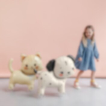 Söpö pieni kissa pyörillä! Tämä hauska ilmapallo rullaa lattialla ja on yhtä aikaa sekä lelu että koriste. Lämpimät värit ja leikkisä muotoilu sopivat täydellisesti kissa-synttäreille tai muihin lasten juhliin.