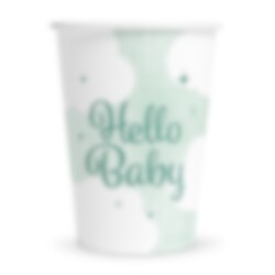 Kata kaunis vauvajuhlapöytä näillä koristeellisilla pahvimukeilla, joissa on teksti Hello Baby. Pehmeä, vaaleasävyinen muotoilu tekee niistä kauniin lisän juhlapöytään, ja ne sopivat täydellisesti baby shower -juhliin, ristiäisiin ja vauvan tervetuliaisjuhliin.