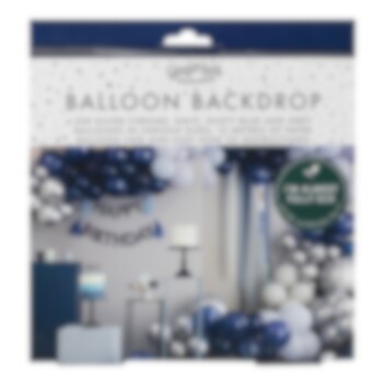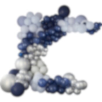 Upea itsekoottava Ilmapallokaari hopean, sinisen ja tummansinisen sävyissä. Todella vaikuttava koriste juhliin tai häihin. Pakkaus sisältää 200 erikokoista ilmapalloa ja lisävarusteita. Ilmapallokaarista on noin 12 metriä pitkä.