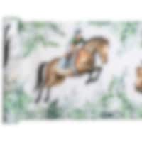Pyöreä folioilmapallo kauniilla kuvalla ratsastajasta kilpahevosen selässä. Hauska koriste juhliin.