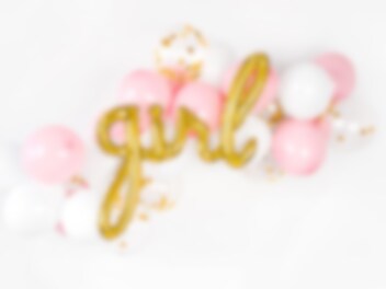 Folioilmapallo kultaisena, joka muodostaa sanan "girl". Koristeellinen lisä Babyshowereille. Pallo on n. 77 x 70 cm puhallettuna ja puhalletaan helpoiten tavallisella ilmalla.