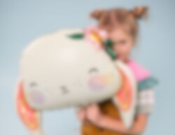 Todella hieno folioilmapallo joka esittää valkoista kania kullanvärisillä yksityiskohdilla. Hauska yksityiskohta moneen eri juhlaan, vauvakutsuille tai muihin tilaisuuksiin.