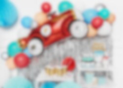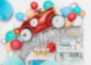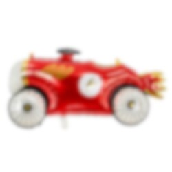 Tyylikäs foliopallo, jossa hieno kilpa-auto. Pallon värit ovat punainen, musta ja valkoinen ja siinä on myös kullan- ja hopeanvärisiä yksityiskohtia. Täydellinen koriste auto-aiheisiin juhliin. Ilmapallo on kooltaan noin 93 x 48 cm ja se voidaan täyttää tavallisella ilmalla tai heliumilla.