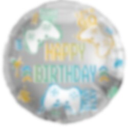 Upea folioilmnapallo erittäin hienoilla peliaiheisilla kuvilla ja "Hyvää syntymäpäivää" -tekstillä. Hauska koriste peliaiheisiin juhliin. Ilmapallo on täytettynä halkaisijaltaan noin 45 cm. Pallo tulee täyttää heliumilla tai ilmalla. Suosittelemme käyttämään ilmapallopumppua, jos haluat täyttää sen ilmalla.