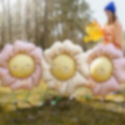 Tämä ihana kukan muotoinen folioilmapallo on hymyilevä, pehmeän vaaleanpunainen ja täydellinen babyshowereille, lasten juhliin ja kesäjuhliin.