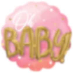 Folioilmapallo vaaleanpunaisessa värissä, jossa on 3D-teksti ''Oh Baby'' valkoisen ja kullan värisenä. Vakuuttava koriste vauvajuhliin. Pallo on halkaisijaltaan noin 71 cm täyteen puhallettuna ja se täytetään ilmalla tai heliumilla.