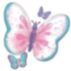 Söpö värikkään perhosen muotoinen folioilmapallo. Kaunis koriste juhliin. Ilmapallon koko on täytettynä noin 73 x 71 cm, ja se täytetään ilmalla tai heliumilla.