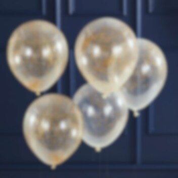5 kpl läpinäkyviä ilmapalloja, jotka on täytetty kullanvärisellä hiuksenkaltaisella konfetilla kokoelmalta Pop The Bubbly. Kaunis koriste jokaiseen juhlaan. Ilmapallot ovat n. 30 cm halkaisijaltaan puhallettuina, ja voidaan täyttää heliumilla tai tavallisella ilmalla. Hankaa ilmapalloa kangasta vasten saadaksesi aikaan staattista sähköä, jolloin konfetti kiinnittyy ilmapallon sisäosaan.