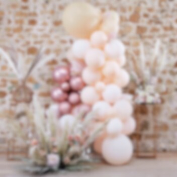 Todella näyttävä ilmapallokaari valkoisen, persikan ja ruusukullan sävyissä, jotka rakennat itse. Erittäin vaikuttava koriste, joka sopii moneen eri juhlaan, kuten syntymäpäiviin tai häihin. Pakkaus sisältää peräti 70 kpl ilmapalloja eri kokoisina ja lisätarvikkeet. Ilmapallokaari on koottuna noin 4 metriä pitkä.