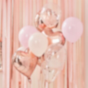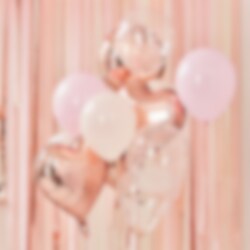 Luo taikaa tällä kauniilla ruusukultaisella, vaaleanpunaisella ja valkoisella ilmapallokimpulla! Täydellinen juhlakoristeeksi, vauvakutsuille tai yllätykseksi syntymäpäiväsankarille. Pakkaus sisältää 12 upeaa ilmapalloa: