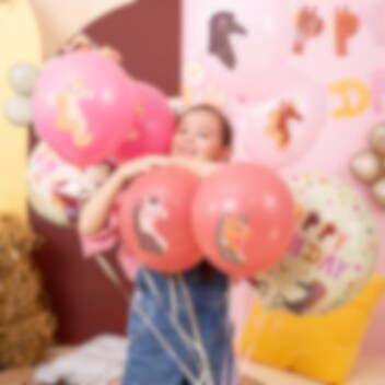 Anna hevosten ottaa paikkansa juhlissa näiden iloisen väristen ilmapallojen avulla. Kuusi erilaista hevoskuvitusta tekevät niistä täydellisiä hevosteeman lastenjuhliin tai pienille eläinten ystäville, jotka haaveilevat tallipäivästä.