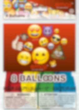 8 kpl kivanvärisiä ilmapalloja, joissa on emojien kuvia. Hieno koriste synttäreille. Ilmapallojen halkaisija on täyteen puhallettuna n. 30 cm.