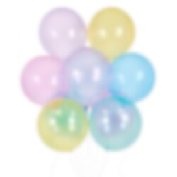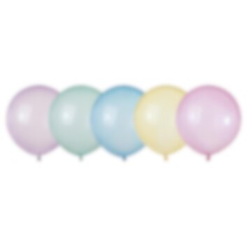 25kpl lateksi-ilmapalloja kauniissa pastelliväreissä. Ilmapallojen halkaisija on täytettynä noin 48 cm. Pallot voi täyttää tavallisella ilmalla tai heliumilla. MERKINTÄ! Että nämä ilmapallot ovat väriltään tummia, kun saat ne ja että ne muuttuvat vaaleiksi vasta kun olet täyttänyt ne!