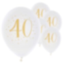 8 kpl. valkoisia ilmapalloja, joissa on 40-vuotispainatus ja kultaisia tähtiä. Ilmapallot ovat kauniita ja ne voi yhdistää moniin muihin koristeisiin ja kattaustarvikkeisiin 40-vuotisteemalla.
