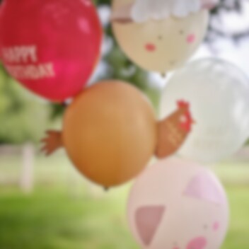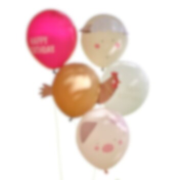 5 kpl ilmapalloja kauniissa väreissä. Ne muuttuvat söpöiksi maatilan eläimiksi mukana tulevien tarvikkeiden avulla. Ilmapallot ovat halkaisijaltaan 30 cm.