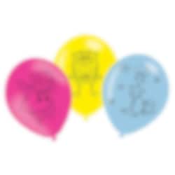 6 kpl lateksi-ilmapalloja väreissä vaaleansininen, keltainen ja pinkki, hauskalla TV-sarjasta tutulla Paavo Pesusieni-teemalla. Hieno koriste huoneeseen, kun on aika synttäreille. ilmapallojen halkaisija on täytettynä noin 27,5 cm ja ne voidaan täyttää joko tavallisella ilmalla tai heliumilla.