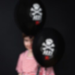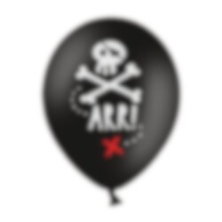 6 mustaa ilmapalloa Pirates party -teemalla. Täydelliset merirosvoteemaisiin juhliin. Ilmapallot ovat noin 30 cm kokoisia täytettynä.