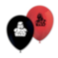 8 kpl ilmapalloja, joissa on kuva Stormtrooperista ja Darth Vaderista elokuvasta Star Wars. Upea koriste Star Wars -synttäreille. Ilmapallot ovat halkaisijaltaan 28 cm täyteen puhallettuina.