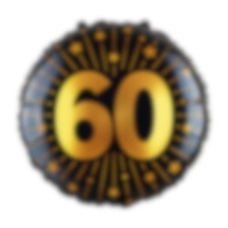 Juhli 60-vuotissyntymäpäivääsi tyylillä! Pyöreä mustakultainen folioilmapallo, jossa on numero "60" on todellinen katseenvangitsija juhlissa. Ilmapallo on noin 46 cm kokoinen ja se voidaan täyttää heliumilla leijumaan tai ilmalla ripustettavaksi tai kiinnitettäväksi koristeisiin.